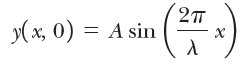x=0 에서 진폭이 0 이고, 진폭이 0 인 (y=0) 다음 지점은 x 가 파장의 1/2 인 지점이므로 다음을 얻는다.