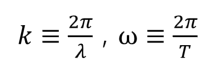 그리고, 파수 (k : wave number) 와 각진동수 (w : angular frequency) 를 이용하면,