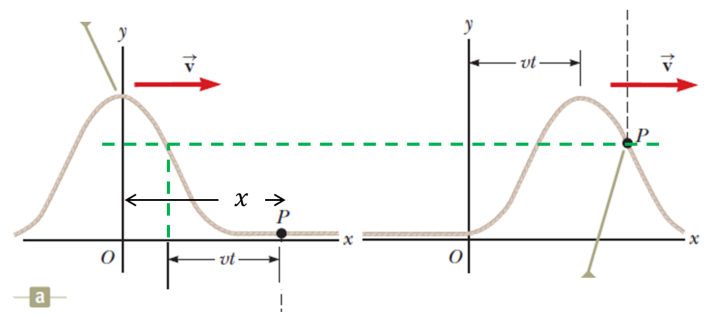 이게 무슨말이냐면, 시간 t 일 때 위치 x 의 밧줄의 높이 와 시간 0 일 때 위치 x-vt 의 밧줄의 높이가 같다 는 말인데, 그림으로 보면,