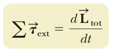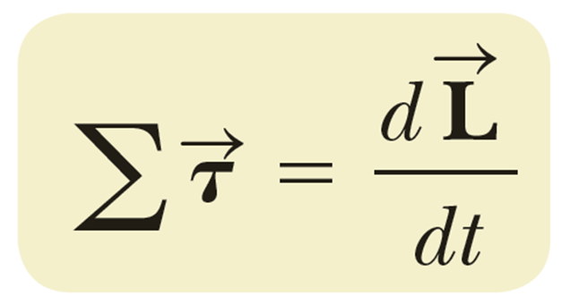 이제 우리는 회전운동하는 물체에 가해지는 토크를 각운동량으로 다음으로 쓸 수 있고, 이는 뉴턴의 두번째 운동법칙을 통한 회전운동의 기술이다.