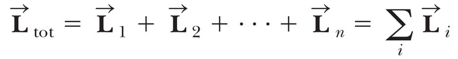 먼저, 임의의 축에 대한 다입자 계의 전체 각운동량은 계를 이루는 입자 각각의 각운동량의 합과 같다.