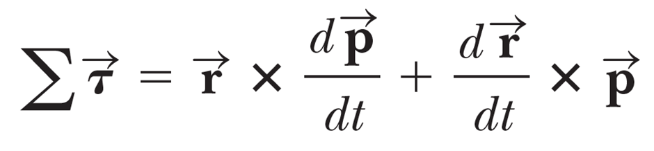 그런데, 물체에 가해지는 힘과 위치의 벡터곱이 토크임은 이미 알고있으니까, 우리는 위 식에 아래와 같은 과정을 적용 해볼 수 있다.