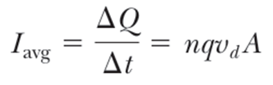 실제로 전류가 전달되고 있는 도선 속 자유전자의 표류 속도를 계산해보자. 3.31 x 10-6 m2 의 단면적을 갖는 구리 도선을 통해 10.0 A 의 일정한 전류가 전달되고 있을 때, 도선 속 전자의 표류 속도 (drift speed) 는 얼마인가?구리 원자 하나 당 하나의 자유 전자가 발생한다 가정하고, 구리의 밀도는 8.92 g/cm3 이다. 풀이)우린 앞에서 표류 속도와 평균 전류 사이의 관계를 구했었다. 전류의 크기가 일정하다고 했으니까, 위 식을 표류 속도에 관한 식으로 바꿔 쓰면, 전류 I, 단면적 A, 전자의 전하량 q 는 알고 있으니까,전자의 밀도 n 만 이 문제에 맞게 바꿀 수 있으면 끝난다. 구리 1 몰의 부피는 M은 구리의 몰 질량이고, ρ 는 밀도이다.문제에서 알려주진 않았지..